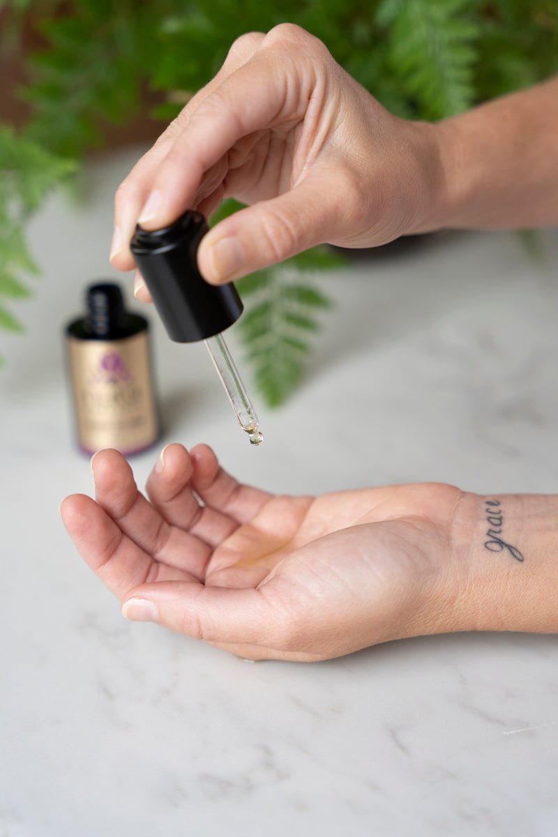 p.m. use 8-10 drops, massage onto entire face, neck, and décolleté for a luxurious nighttime skin repair and rejuvenation.